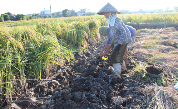 Nông dân xã Thụy Quỳnh (Thái Thụy) trồng cây màu vụ đông.