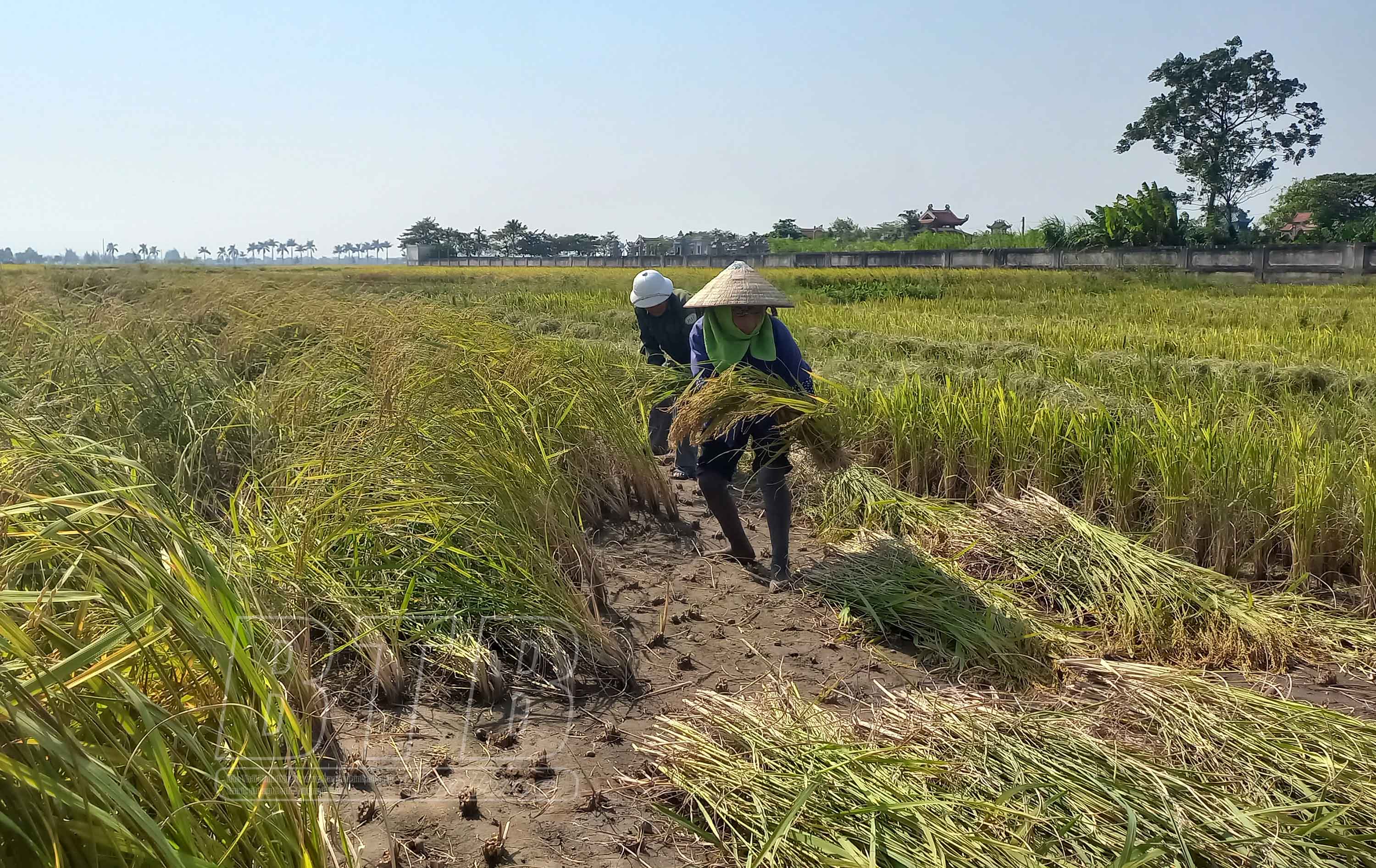Vụ mùa này, gia đình ông Nguyễn Đức Phan, thôn Phụng Thượng, xã Vũ An, huyện Kiến Xương gieo cấy hơn 5 sào lúa. Để tạo quỹ đất trồng khoai tây vụ đông cũng như bảo toàn năng suất lúa trước diễn biến phức tạp của thời tiết, không đợi máy gặt về, vợ chồng ông khẩn trương thu hoạch bằng tay diện tích lúa còn lại, tránh thiệt hại do mưa lớn.