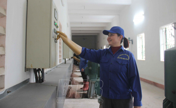 Công nhân trạm bơm Hậu Thượng (Đông Hưng) kiểm tra máy móc, sẵn sàng vận hành bơm lấy nước đổ ải phục vụ làm đất, gieo cấy lúa xuân.