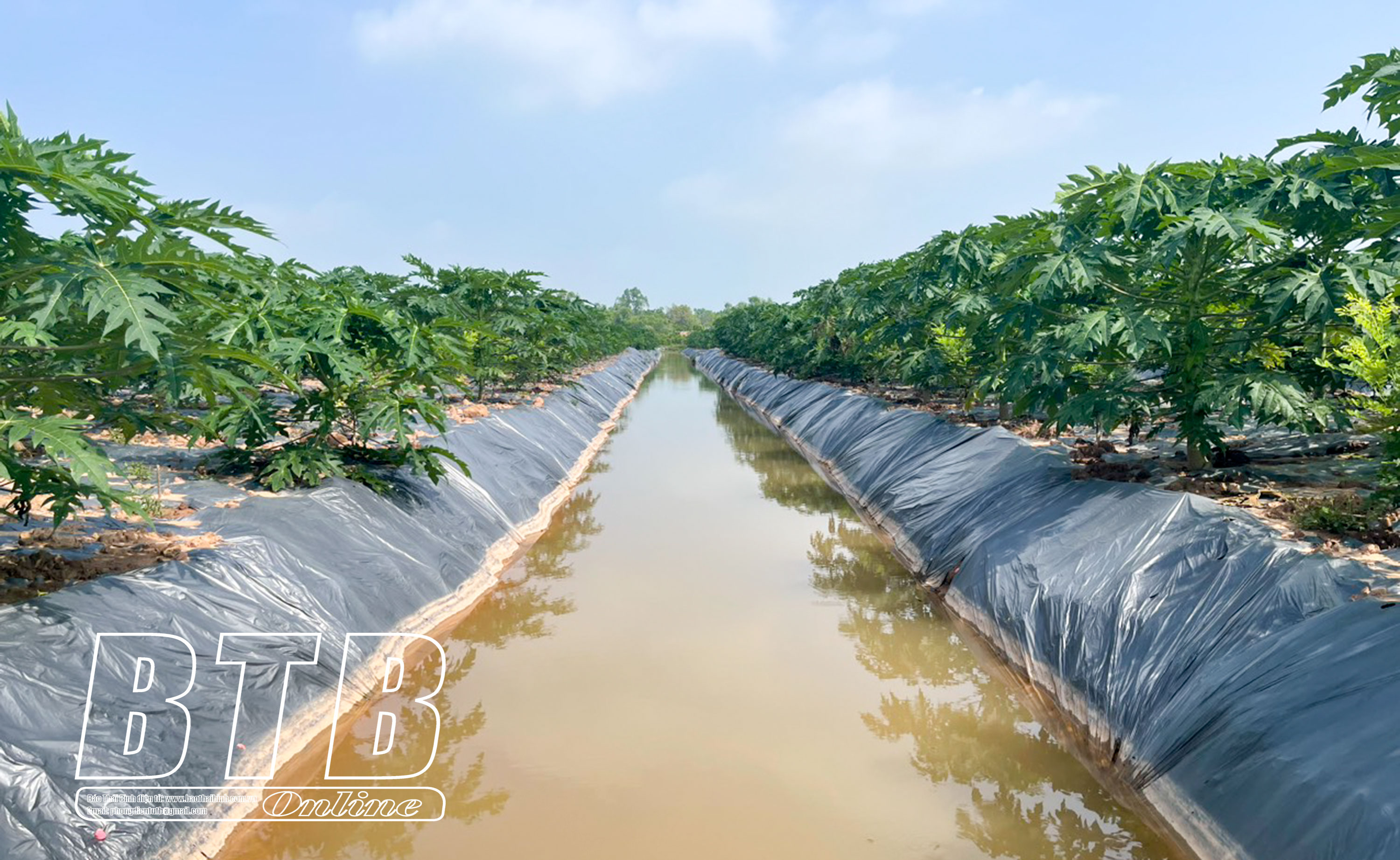 Mô hình trồng hòe và đu đủ lấy hoa của HTX Thái Dương Xanh tại thôn Tịnh Xuyên, xã Hồng Minh (Hưng Hà).