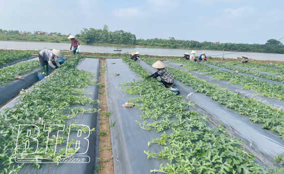 Ông Phạm Văn Bình, Trưởng phòng Nông nghiệp và Phát triển nông thôn huyện cho biết: Hiện nay Hưng Hà đẩy mạnh phát triển 7 vùng sản xuất tập trung, đồng thời ban hành cơ chế hỗ trợ trên 17 tỷ đồng cho 5 vùng sản xuất gồm: dưa, bí xã Duyên Hải và Dân Chủ; ngưu tất xã Thống Nhất; cây ăn quả xã Cộng Hòa; cà rốt, ngô ngọt, lạc xã Điệp Nông; hỗ trợ giống cho 2 vùng sản xuất trồng cây dược liệu và 62ha lúa chất lượng cao tại xã Chí Hòa. Để việc chuyển đổi đem lại hiệu quả cao, chúng tôi đã sát cánh cùng các địa phương tiến hành rà soát lại quỹ đất, quy hoạch các vùng, tiểu vùng sản xuất, hướng đến sản xuất nông nghiệp công nghệ cao, cánh đồng lớn, vùng sản xuất nguyên liệu phục vụ chế biến, xuất khẩu. Hỗ trợ các đơn vị, địa phương xây dựng các mô hình sản xuất điểm gắn với chuyển giao kỹ thuật cho nông dân và tăng cường tuyên truyền, vận động nông dân tích cực chuyển đổi cơ cấu giống cây trồng, nâng cao hiệu quả sử dụng đất; tăng cường đầu tư thâm canh, luân canh; vận động nông dân chuyển đổi các vùng trồng lúa kém hiệu quả sang trồng các loại cây có giá trị kinh tế cao theo hướng sản xuất hàng hóa như dưa lê, dưa hấu, cà chua, thanh long, rau màu. Thực tế đã chứng minh đổi mới tư duy, mạnh dạn chuyển đổi, tích tụ ruộng đất là hướng đi đúng, trúng để nông dân bắt kịp sản xuất nông nghiệp thời kỳ công nghiệp hóa, hiện đại hóa nông nghiệp, nông thôn.