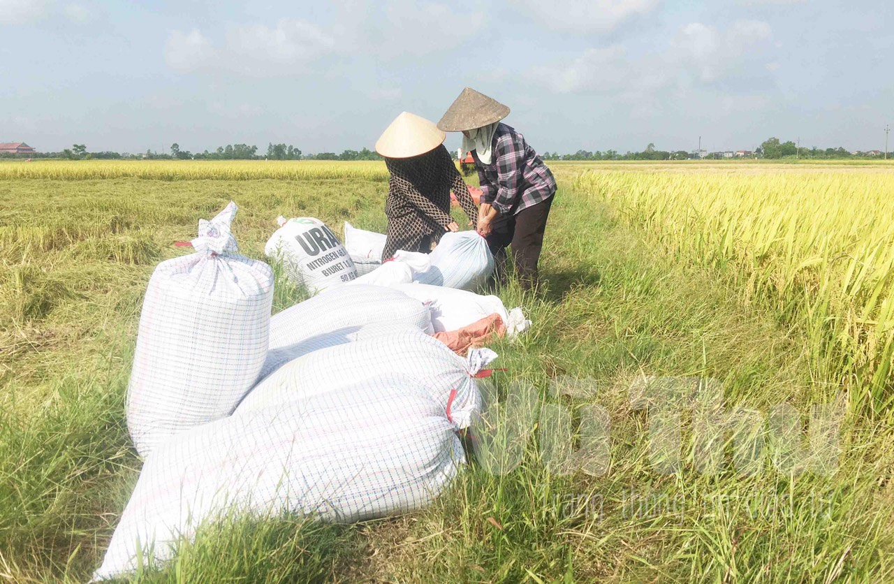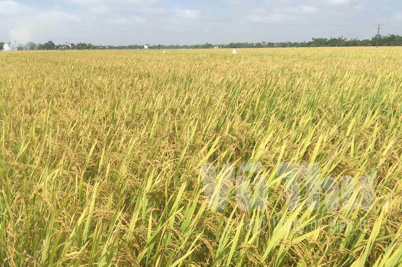 Đôi mắt lấp lánh niềm vui, anh Nguyễn Đình Sáng, thôn Nội phấn khởi chia sẻ: Vụ xuân năm nay là vụ thứ 3, gia đình anh sản xuất trên vùng đất tập trung quy mô 20 ha được gom, dồn đổi của trên 100 hộ dân không có nhu cầu sản xuất trong xã. Làm nông nghiệp tuy vất vả nhưng nếu chịu khó đổi mới canh tác, thu nhập cũng ổn định. Ruộng đất tập trung, một chủ nên anh Sáng có thể thực hiện chuyên canh lúa “đồng trà, cùng giống”, đưa máy móc hiện đại vào sản xuất. Nhờ được gieo cấy trong khung thời vụ, chăm sóc khoa học, đúng kỹ thuật nên năng suất lúa luôn ổn định. Vụ xuân này, năng suất lúa bình quân đạt 200 kg/sào. Cấy 20 ha, sau khi trừ chi phí đã mang về lợi nhuận khoảng 500 triệu đồng. Những mảnh ruộng bỏ hoang trước đây giờ đã thực sự “hóa vàng”.