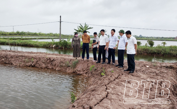 Chi cục Chăn nuôi và Thú y kiểm tra diễn biến và công tác xử lý dịch bệnh đốm trắng trên tôm nuôi tại Thái Thụy.