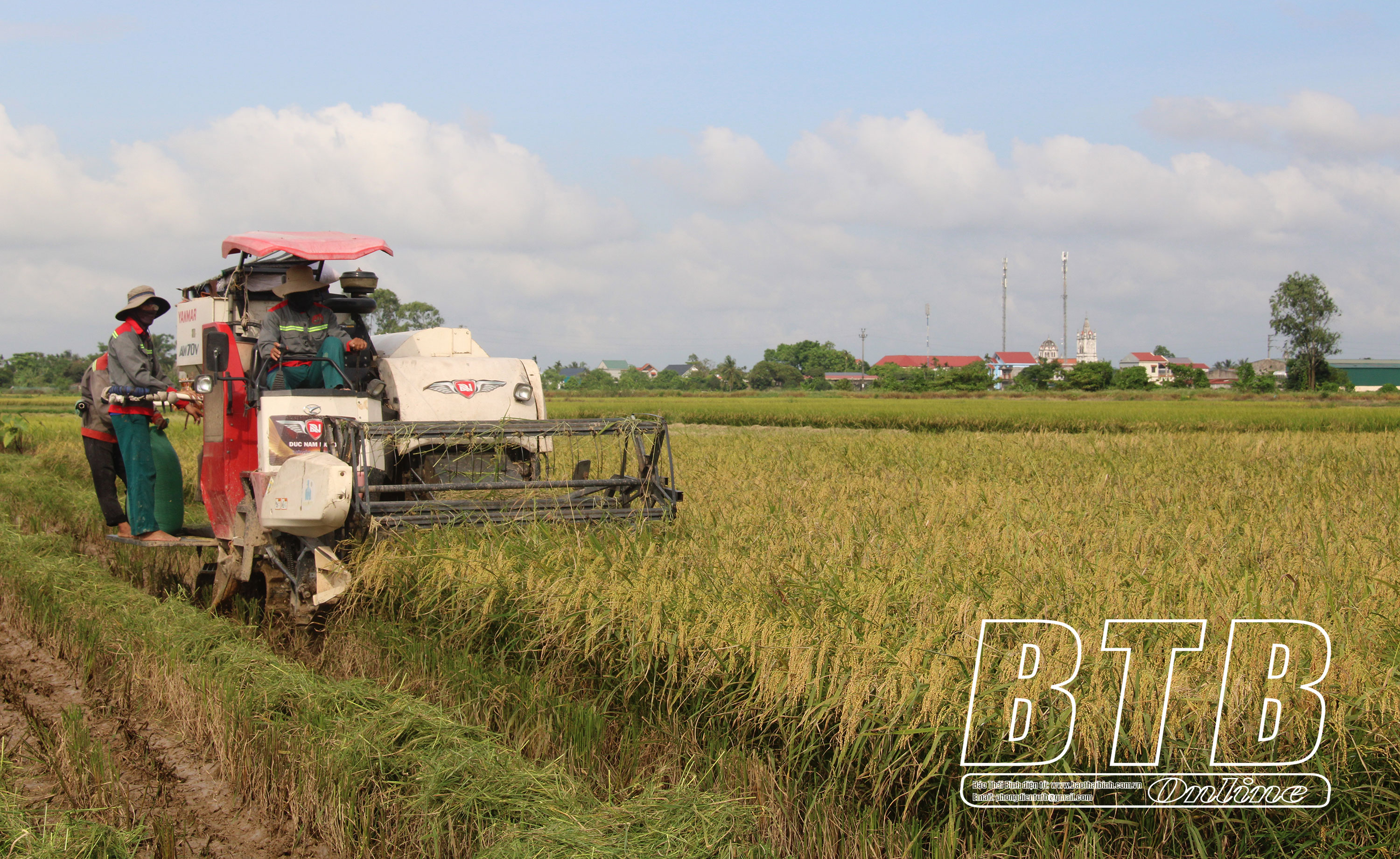 Nhiều năm nay, chị Đỗ Thị Thúy đều thông qua HTX bao tiêu thóc cho bà con một số xã của huyện Đông Hưng, mỗi vụ khoảng 1.000 tấn. Chị Thúy cho biết: Vụ nào tôi cũng liên kết với các HTX bao tiêu thóc cho bà con để cung ứng cho doanh nghiệp chuyển cơ sở làm cơm cháy xuất khẩu. Tôi thường thu mua thóc của cụm xã Phương, Cường, Xá vì HTX tổ chức thu hoạch nhanh gọn, đặc biệt cấy thành vùng thóc không bị pha tạp, hạt thóc có độ mẩy cao, chất lượng gạo ngon, khách hàng rất ưa chuộng.