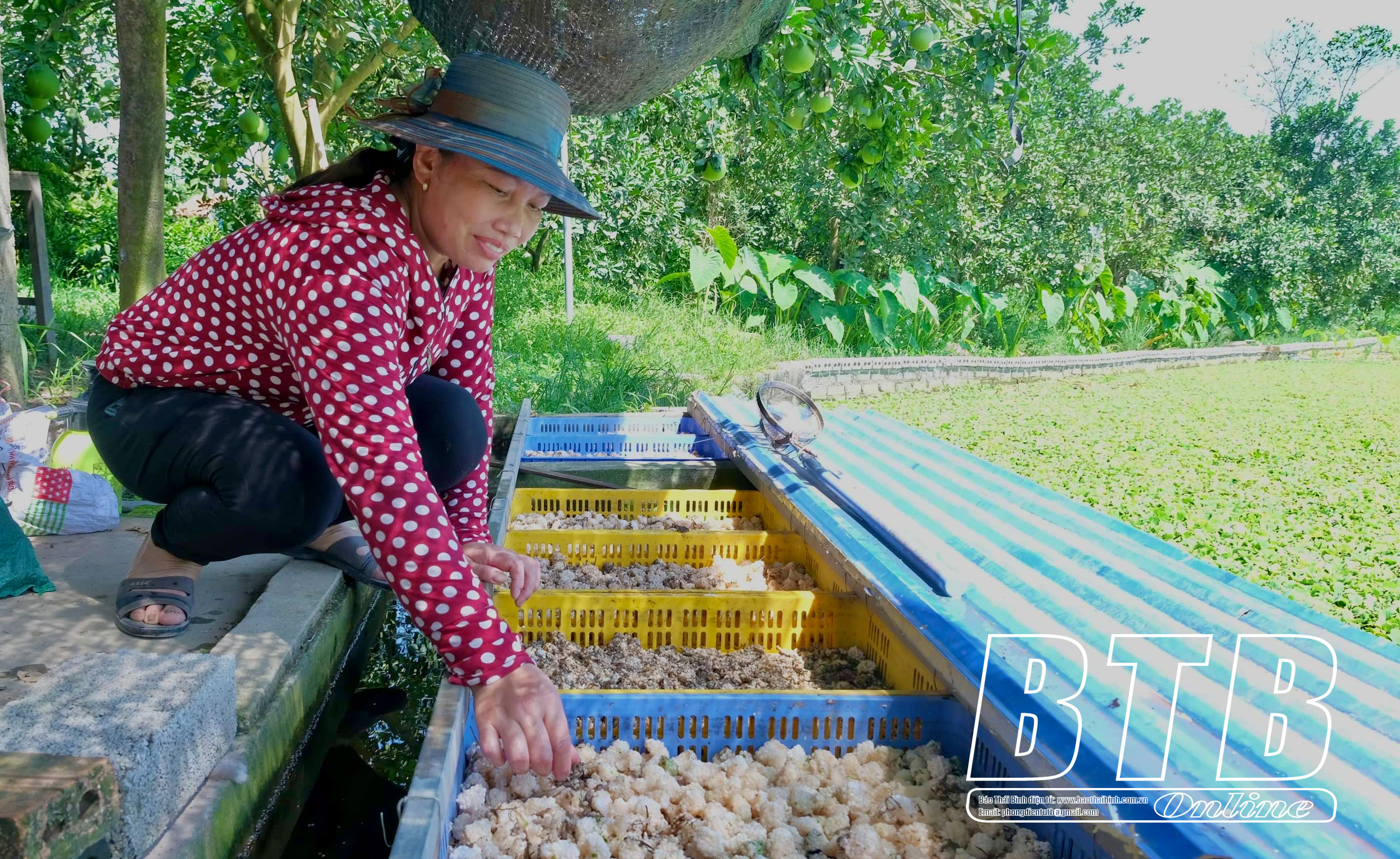 Trước đây, việc cấy và thu hoạch lúa của gia đình chị Nguyễn Thị Anh, thôn Nhuệ gặp rất nhiều khó khăn do đất trũng, thường xuyên bị ngập úng. Năm 2007, được sự động viên, khuyến khích của chính quyền địa phương, chị Anh quyết tâm đầu tư để chuyển đổi sang trồng cây ăn quả và nuôi ốc nhồi. Sau 16 năm, diện tích sản xuất của gia đình chị đã mở rộng lên 3ha, trồng xen canh nhiều loại cây ăn quả để phù hợp với nhu cầu của khách hàng như bưởi diễn, ổi ruby, na Đài Loan...