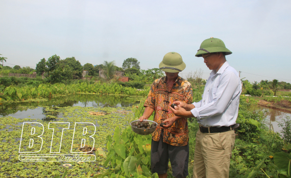 Cũng như ông Quang, ông Phạm Bá Hoằng, thôn Chiến Thắng, xã Bách Thuận (Vũ Thư) chuyển hướng nuôi ốc nhồi khi chăn nuôi lợn bấp bênh, tiềm ẩn nhiều rủi ro. Với 2 ao nuôi diện tích trên 1.000m2, mỗi năm ông Hoằng thu nhập trên 100 triệu đồng từ nuôi ốc nhồi. Ông chia sẻ: Quá trình nuôi thả ốc nhồi diễn ra hoàn toàn tự nhiên, điều kiện nuôi tốt nhất trong môi trường nước ngọt, không bị nhiễm phèn, mặn hay nhiễm độc từ các loại thuốc bảo vệ thực vật. Thời gian nuôi từ khi xuống giống đến khi thu hoạch khoảng 4 tháng, ốc có thể đạt kích cỡ 25 - 35 con/kg. Nếu nuôi thêm 2 tháng nữa ốc sẽ sinh sản. Thức ăn của ốc hoàn toàn là các sản phẩm rau, củ, quả sạch nên quanh ao, tôi tận dụng trồng các loại rau, cây ăn quả, vừa làm thức ăn vừa tạo bóng mát cho ốc trú ngụ. Trên mặt ao nuôi tôi sử dụng lưới đen chống nắng, quây một góc ao thả bèo để cân bằng môi trường nước. Tùy quy mô, mật độ, kích cỡ ốc nuôi, 2 - 4 ngày mới phải bổ sung thức ăn một lần. Đặc biệt, vào các tháng mùa đông ốc nhồi sẽ ít vận động nên không cần cung cấp thức ăn nhiều, liên tục. Đây được coi là giai đoạn ốc “ngủ đông” nên việc cung cấp thức ăn chỉ thực hiện ở mức độ vừa phải, hạn chế thức ăn dư thừa trong ao kết hợp với chất thải của ốc quá nhiều sẽ gây ô nhiễm nguồn nước.