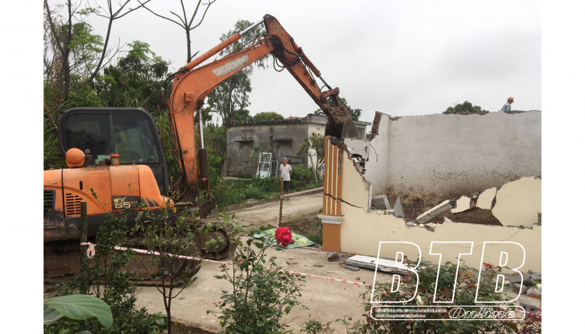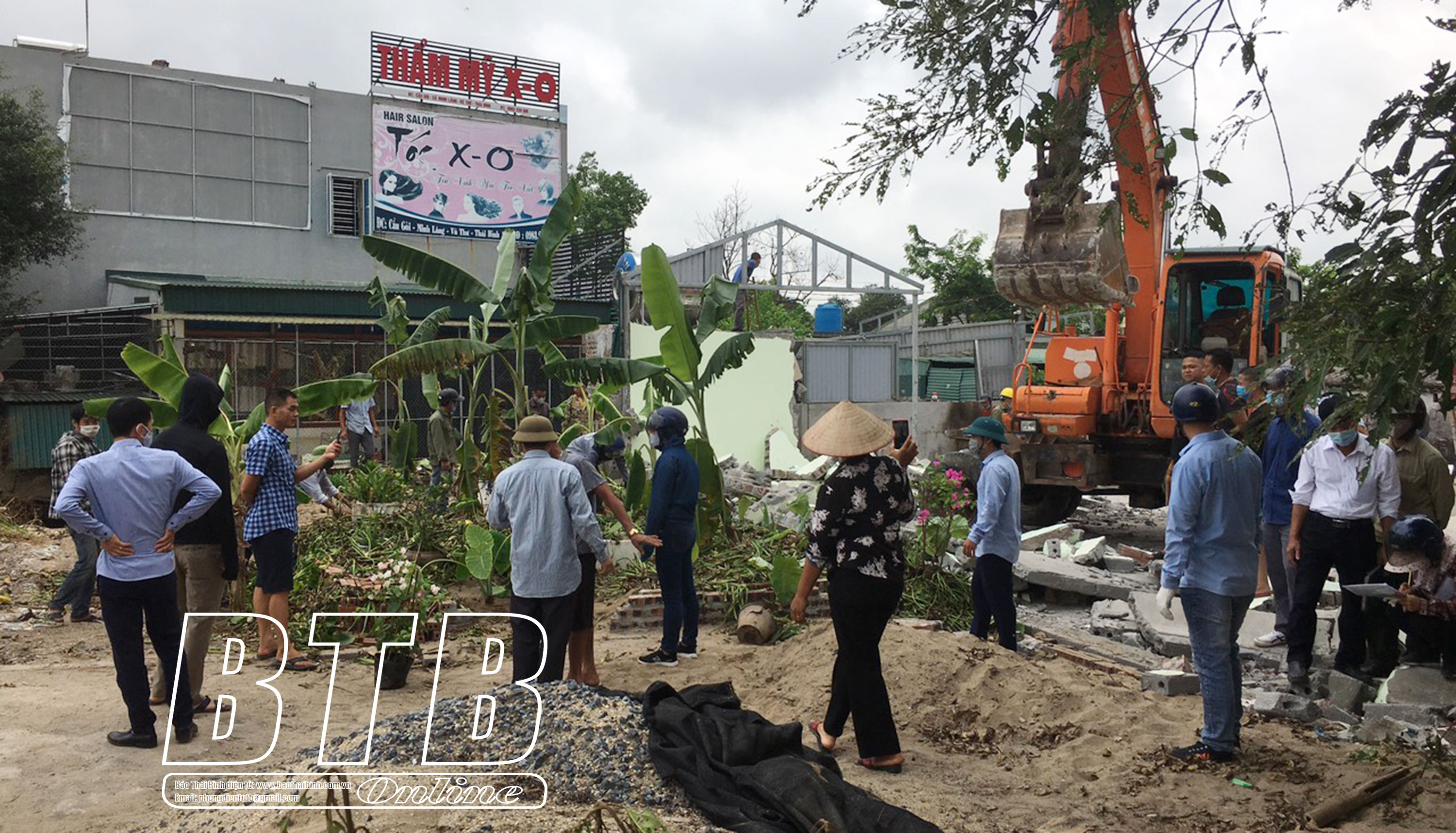 Cưỡng chế thu dỡ công trình xây dựng nhà ở trái phép trên đất nông nghiệp của gia đình ông Nguyễn Kết Đoàn, xã Song An (Vũ Thư).