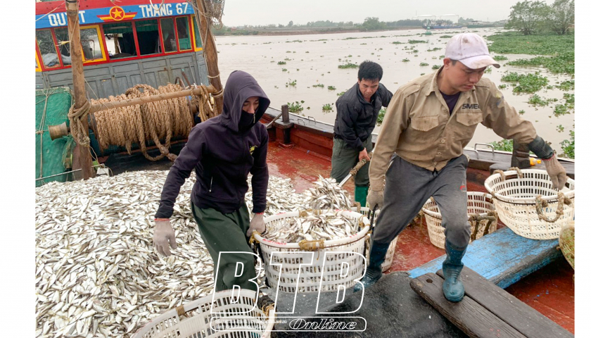 Ngư dân Thái Thụy sau chuyến ra khơi thành công.