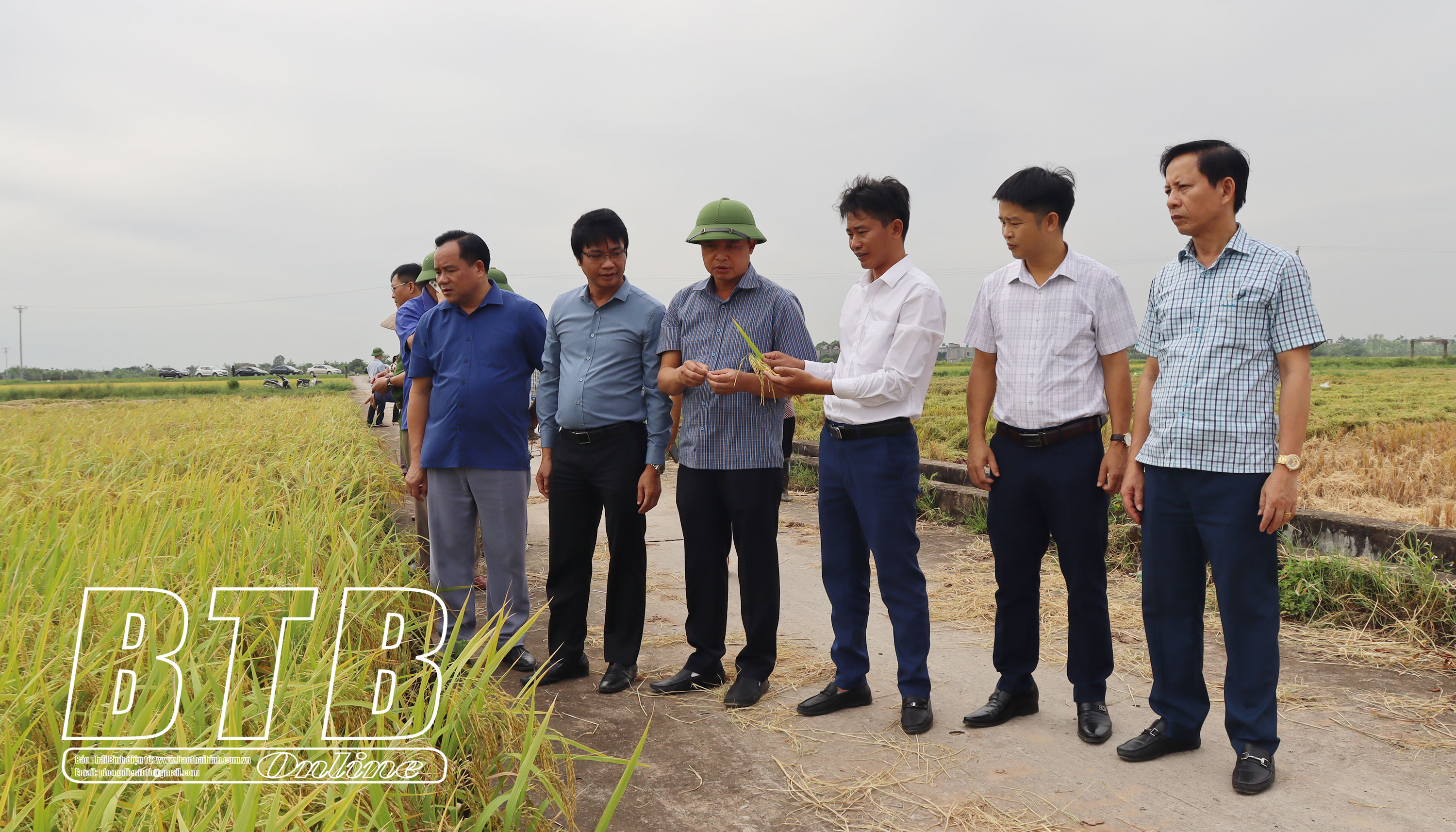 Đoàn thăm đồng đánh giá năng suất lúa mùa tại xã Bình Thanh.