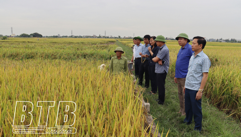 Để đánh giá xác thực năng suất lúa mùa, đoàn đã đi thăm đồng, khảo sát thực tế tại một số cánh đồng của các xã: Quang Minh, Bình Thanh, Vũ Bình. Sau khi đi thăm đồng, đoàn đã trao đổi, đánh giá năng suất lúa mùa, phân tích chỉ rõ những tồn tại, hạn chế đồng thời thống nhất với dự kiến năng suất lúa mùa năm 2023 của huyện Kiến Xương đạt 60 tạ/ha, sản lượng đạt trên 67.100 tấn.