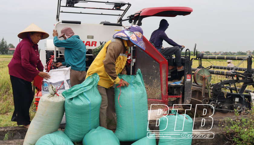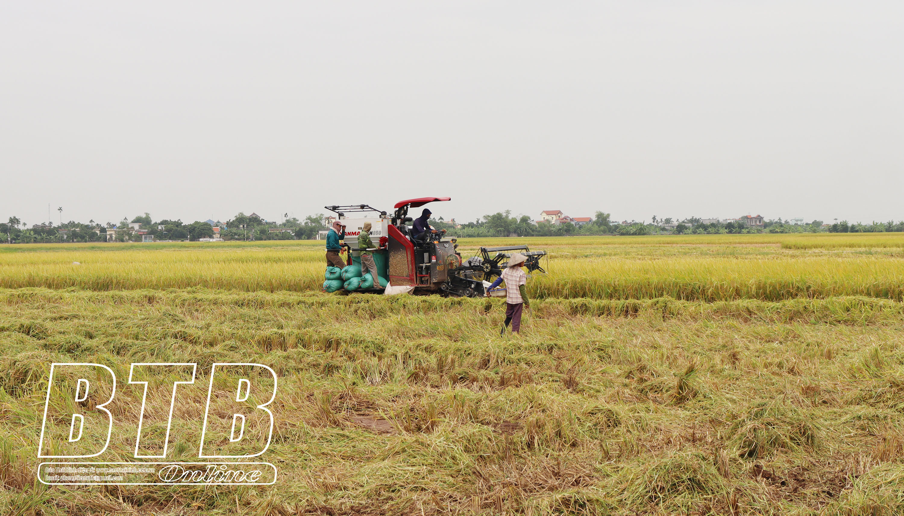 Kiến Xương: Đẩy nhanh tiến độ thu hoạch lúa mùa
