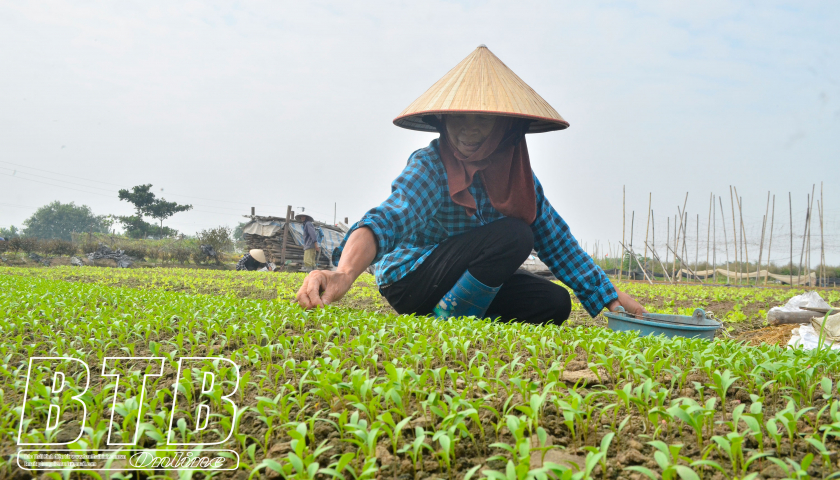Nông dân xã Vũ Phúc xuống giống vụ đông.