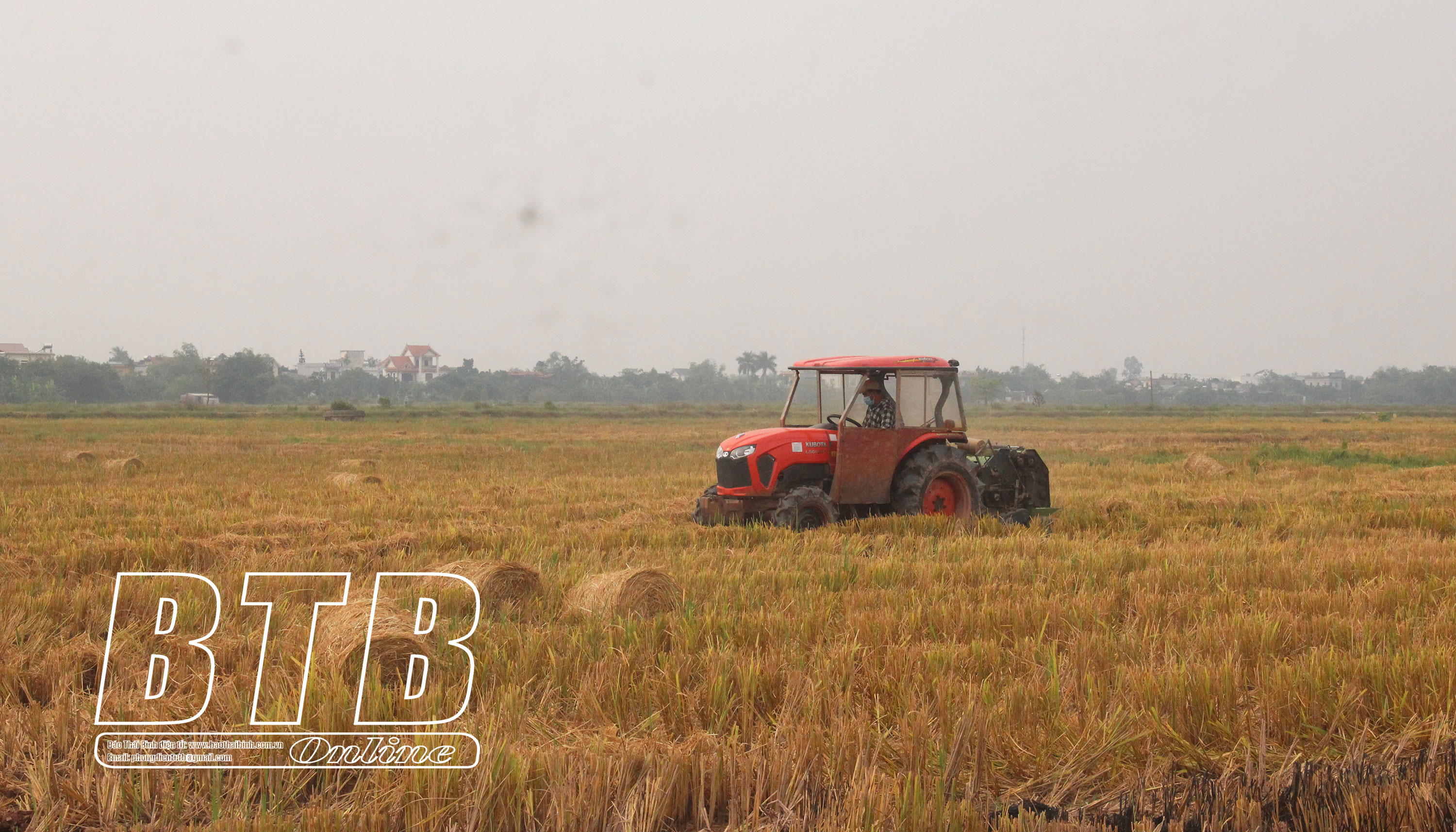 Thay vì đầu tư máy cuộn rơm chuyên dụng, anh Phạm Kim Chung, thôn 3, xã Vũ Đoài (Vũ Thư) tận dụng máy làm đất sẵn có của gia đình, thay thế dàn xới phía sau bằng máy cuộn rơm để thu gom rơm. Vụ mùa này là vụ thứ hai anh thu gom rơm bán cho công ty. Ngơi tay với máy gặt khi mùa thu hoạch lúa mùa kết thúc, anh Chung lại tất bật bước vào vụ thu rơm. Anh cho biết: Thu gom rơm chỉ diễn ra trong thời gian nhất định nên tôi đầu tư 50 triệu đồng lắp đặt máy cuộn rơm vào đầu kéo máy làm đất, vừa tiết kiệm chi phí vừa nâng cao hiệu suất sử dụng máy làm đất. Máy hoạt động tốt trên cả nền ruộng khô và ẩm ướt. Cơ chế vận hành máy khá đơn giản, rơm sẽ được trục bánh răng của máy cuốn vào và được nén chặt bởi trục cuộn nằm phía trong. Sau đó, rơm được buộc lại bởi hệ thống dây quấn, thắt nút cắt tự động thành các cuộn to. Mỗi cuộn rơm hoàn thành trung bình chỉ trong gần 1 phút. Công suất thu gom rơm đạt từ 300 - 400 cuộn/ngày (tùy thuộc vào trữ lượng rơm, tính hoạt động liên tục của máy). Trọng lượng cuộn rơm có thể tùy chỉnh, thông thường tôi cuộn theo yêu cầu của đơn vị thu mua từ 15 - 17kg/cuộn. Ở vụ mùa, nếu thời tiết thuận lợi, ruộng sau thu hoạch 3 ngày rơm sẽ đạt độ khô theo yêu cầu của đơn vị thu mua.