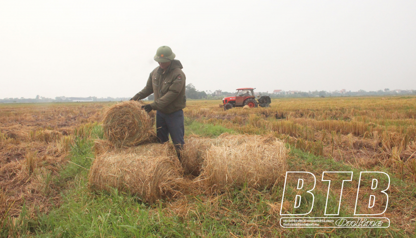 Tại Thái Bình, để tạo ra sản lượng 1 triệu tấn thóc, nông dân cũng tạo ra lượng rơm, rạ khoảng 1,2 triệu tấn, trong đó rơm khoảng 480.000 tấn. Bà Phạm Thị Hiên, Trung tâm Khuyến nông Thái Bình cho biết: Với lượng rơm này nếu được thu gom toàn bộ và tạo giá trị thị trường có thể thu về từ 480 - 500 tỷ đồng/năm, tương đương 200.000 đồng/sào/năm, hoặc có thể làm thức ăn xơ thô cho khoảng 88.000 con trâu, bò (gấp 1,5 lần đàn trâu, bò hiện có của tỉnh), hoặc có thể sản xuất được khoảng 150.000 tấn nấm ăn với giá trị khoảng 3.000 tỷ đồng. Việc tận dụng rơm, rạ sau thu hoạch làm nguyên liệu đầu vào cho hoạt động sản xuất nông nghiệp khác có ý nghĩa lớn trong việc phát triển nông nghiệp tuần hoàn, bảo vệ đất, môi trường sinh thái cũng như nâng cao hiệu quả sản xuất lúa. Thời gian qua, Trung tâm Khuyến nông Thái Bình đã phối hợp với các đơn vị triển khai hội thảo trình diễn máy cuộn rơm rạ đa lợi ích cho nhà nông. Vài năm trở lại đây, người dân đã mạnh dạn đầu tư mua máy cuộn rơm. Toàn tỉnh có khoảng 30 máy cuộn rơm các loại.