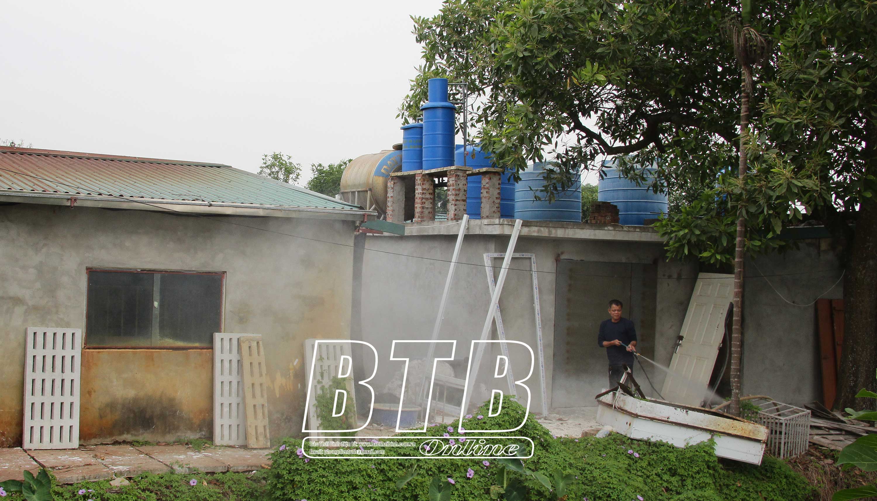 Các hộ chăn nuôi ở Vũ Thư thực hiện tốt tiêu độc khử trùng khu vực chuồng trại để phòng dịch bệnh.
