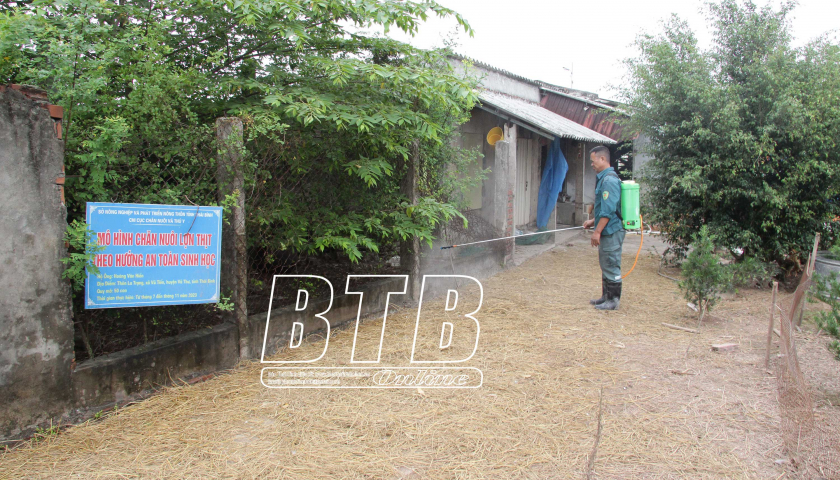 Bà Lưu Thị Thu Hoài, Trạm trưởng Trạm Chăn nuôi và Thú y huyện Vũ Thư cho biết: Để chủ động tiêu diệt mầm bệnh, hạn chế tối đa các nguồn lây nhiễm dịch bệnh trên đàn gia súc, gia cầm, đồng thời ngăn ngừa các bệnh truyền nhiễm lây từ động vật sang người, bảo đảm an toàn thực phẩm và an toàn dịch bệnh cho phát triển chăn nuôi, huyện đã triển khai tháng tổng vệ sinh, tiêu độc khử trùng từ ngày 15/9 - 15/10 với lượng hóa chất được tỉnh hỗ trợ 1,5 tấn. Trong đó, tập trung phun tiêu độc khử trùng tại các vùng trọng điểm, vùng có nguy cơ lây lan dịch bệnh cao, các ổ dịch cũ. Ngoài ra, huyện khuyến cáo người chăn nuôi cần mua thêm các loại hóa chất nằm trong danh mục được Bộ Nông nghiệp và Phát triển nông thôn cho phép sử dụng để xử lý môi trường trong chăn nuôi đạt hiệu quả cao. Đối với các hộ chăn nuôi quy mô trang trại, cán bộ ngành chuyên môn thường xuyên xuống kiểm tra, giám sát, hướng dẫn tiêu độc khử trùng theo quy định. Theo đó, các trang trại thường xuyên kiểm tra các hố sát trùng tại cổng ra, vào chuồng trại, bảo đảm trong hố luôn có đủ vôi bột hoặc đủ lượng hóa chất với nồng độ sát trùng. Phun khử trùng toàn bộ chuồng trại, dụng cụ chăn nuôi, giày dép..., khu vực chăn nuôi và vùng phụ cận, phương tiện vận chuyển động vật. Đối với các chợ, khu giết mổ gia súc, gia cầm cần quét dọn, xử lý chất thải rắn trong chợ bằng biện pháp đốt hoặc chôn, phun thuốc sát trùng khu vực buôn bán cuối mỗi buổi chợ. Các phương tiện vận chuyển và lồng chở gia súc, gia cầm phải được vệ sinh, tiêu độc khử trùng trước và sau khi vận chuyển. Song song việc triển khai tiêu độc khử trùng, Vũ Thư đôn đốc các xã, thị trấn triển khai tiêm phòng cho đàn gia súc, gia cầm, đặc biệt là đàn lợn trong giai đoạn mà bệnh DTLCP diễn biến phức tạp. Kết quả, Vũ Thư đã triển khai tiêm vắc-xin phòng bệnh đỏ đạt 92%, bệnh lở mồm long móng 93% và hơn 1.500 liều vắc-xin phòng bệnh DTLCP...