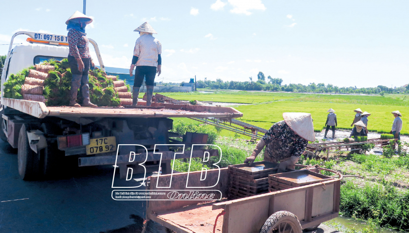 Một trong những điểm nhấn ở Kiến Xương là thực hiện tích tụ ruộng đất với nhiều hộ có diện tích lớn nhất tỉnh. Toàn huyện hiện có hơn 1.400ha ruộng được tích tụ, có hơn 2.500ha thực hiện liên kết bao tiêu sản phẩm. Từ những cánh đồng lớn đó, người dân đã áp dụng khoa học kỹ thuật tạo ra giá trị kinh tế mới trên khắp các cánh đồng.