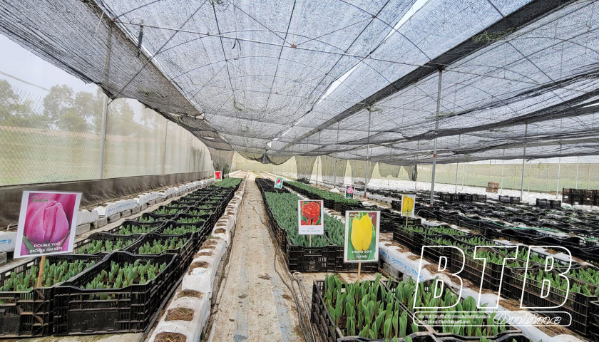 Nông trại trồng hoa tulip của anh Trần Xuân Tâm ở xã Tân Lễ (Hưng Hà).