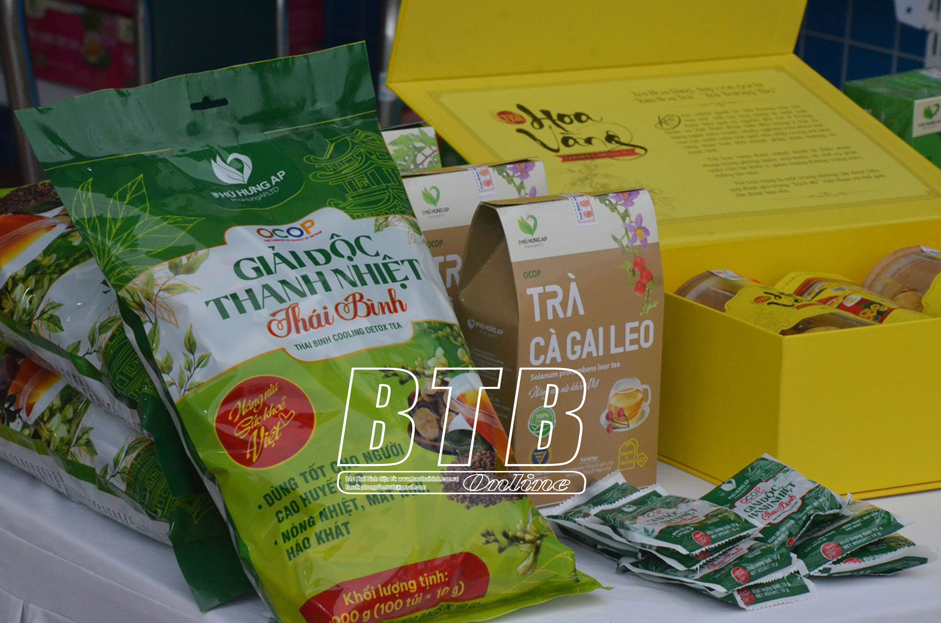 Sản phẩm Trà thảo mộc AP Phú Hưng (Hưng Hà) tham gia trưng bày tại lễ hội.