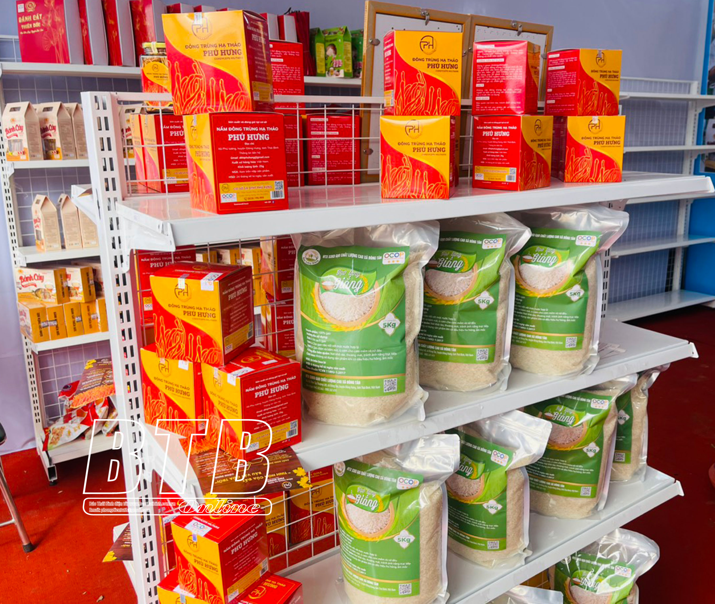 Các sản phẩm OCOP huyện Đông Hưng tham gia trưng bày tại lễ hội đền Trần.