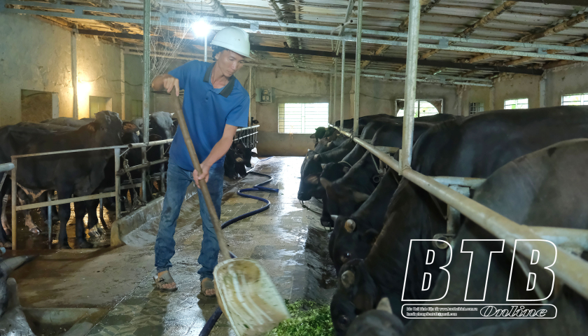 Anh Tống Văn Nhượng, xã Tân Tiến chia sẻ: Tôi đã làm ở trang trại của anh Cường được 5 năm. Công việc của chúng tôi chủ yếu là chuẩn bị thức ăn, vệ sinh chuồng nuôi, chăm sóc đàn bò. Công việc không quá vất vả, thu nhập ổn định, thời gian rảnh chúng tôi có thể tranh thủ làm nhiều công việc khác để cải thiện kinh tế gia đình.