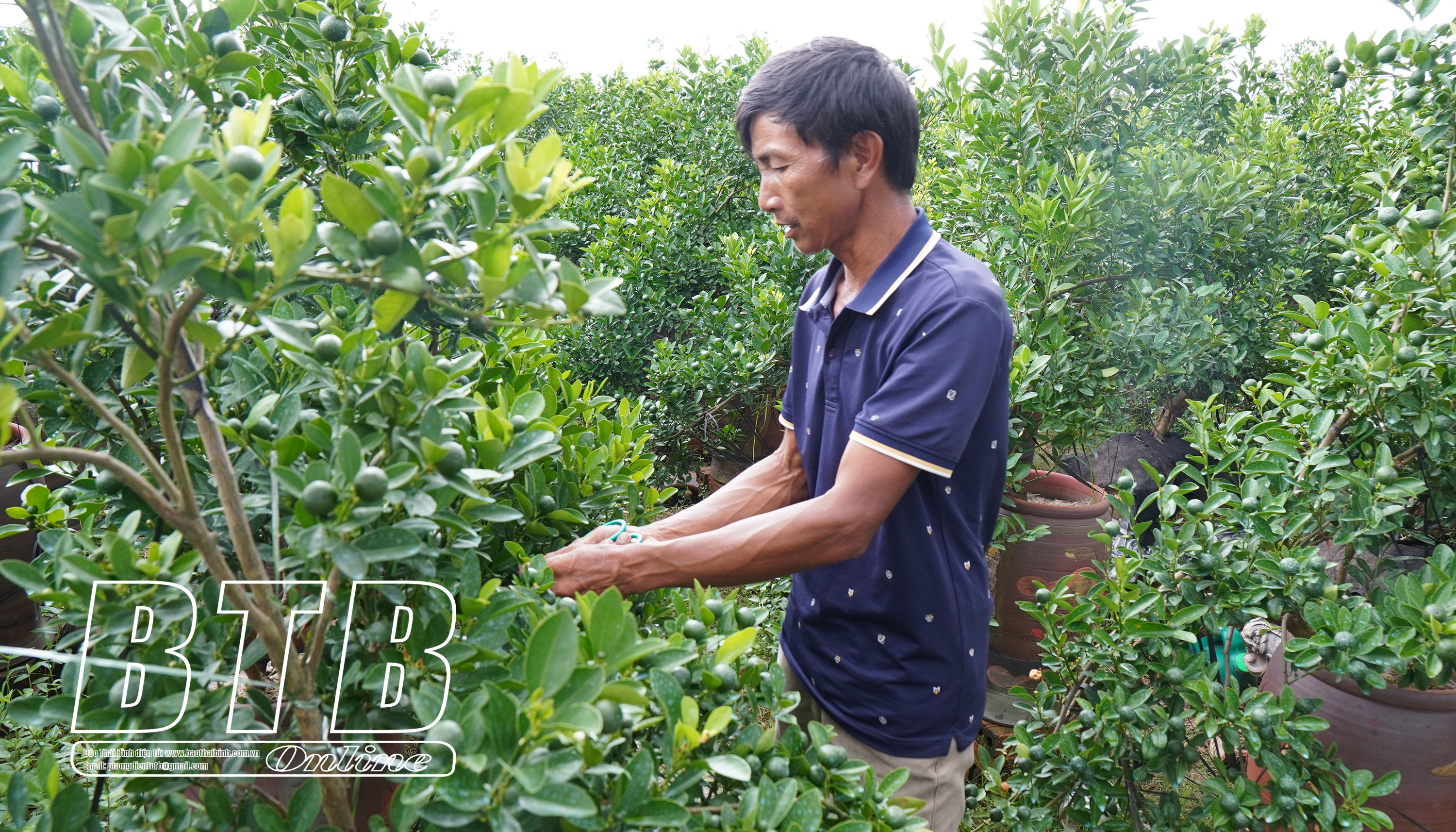 Ông Nguyễn Văn Thắng, thôn Trần Phú gắn bó nghề trồng quất cảnh hơn 25 năm nay. Thời điểm này, nhà vườn của ông đã nhộn nhịp thương lái từ các nơi đến xem cây, đặt mua. Với hơn 1 mẫu đất được chuyển đổi từ diện tích cấy lúa kém hiệu quả, ông Thắng là một trong những nông dân đầu tiên trồng quất cảnh tại địa phương, đặc biệt hút khách với quất bonsai nhiều thế dáng độc đáo. Mỗi năm nhà vườn cung cấp ra thị trường khoảng 3.000 chậu quất lớn, nhỏ, từ quất tiểu cảnh để bàn có giá trên 100.000 đồng/cây, đến quất lùm to, quất thế, quất chum, quất bonsai giá từ 1 - 4 triệu đồng/cây, cho thu lãi khoảng 200 triệu đồng/ năm.