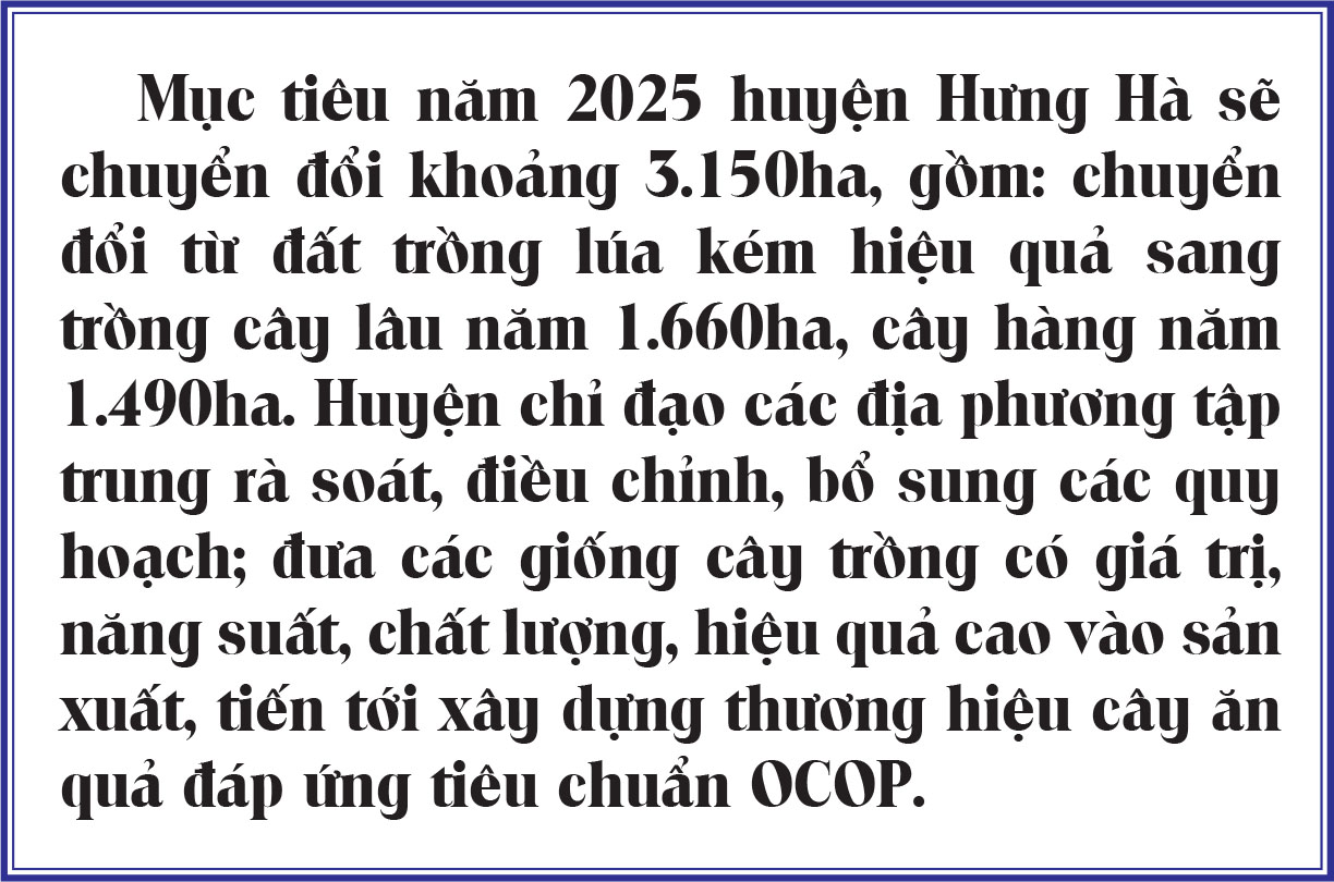 Với mục tiêu phát triển nông nghiệp toàn diện, hiệu quả, trọng tâm là cơ cấu lại ngành nông nghiệp gắn với quy vùng sản xuất tập trung và tích tụ, tập trung ruộng đất, đến nay huyện Hưng Hà đã tích tụ ruộng đất trên 1.000ha, chiếm 7,7% tổng diện tích đất nông nghiệp. Giá trị sản xuất nông nghiệp của huyện năm 2024 tăng 0,74% so với năm 2023, đứng thứ 2/8 huyện, thành phố.