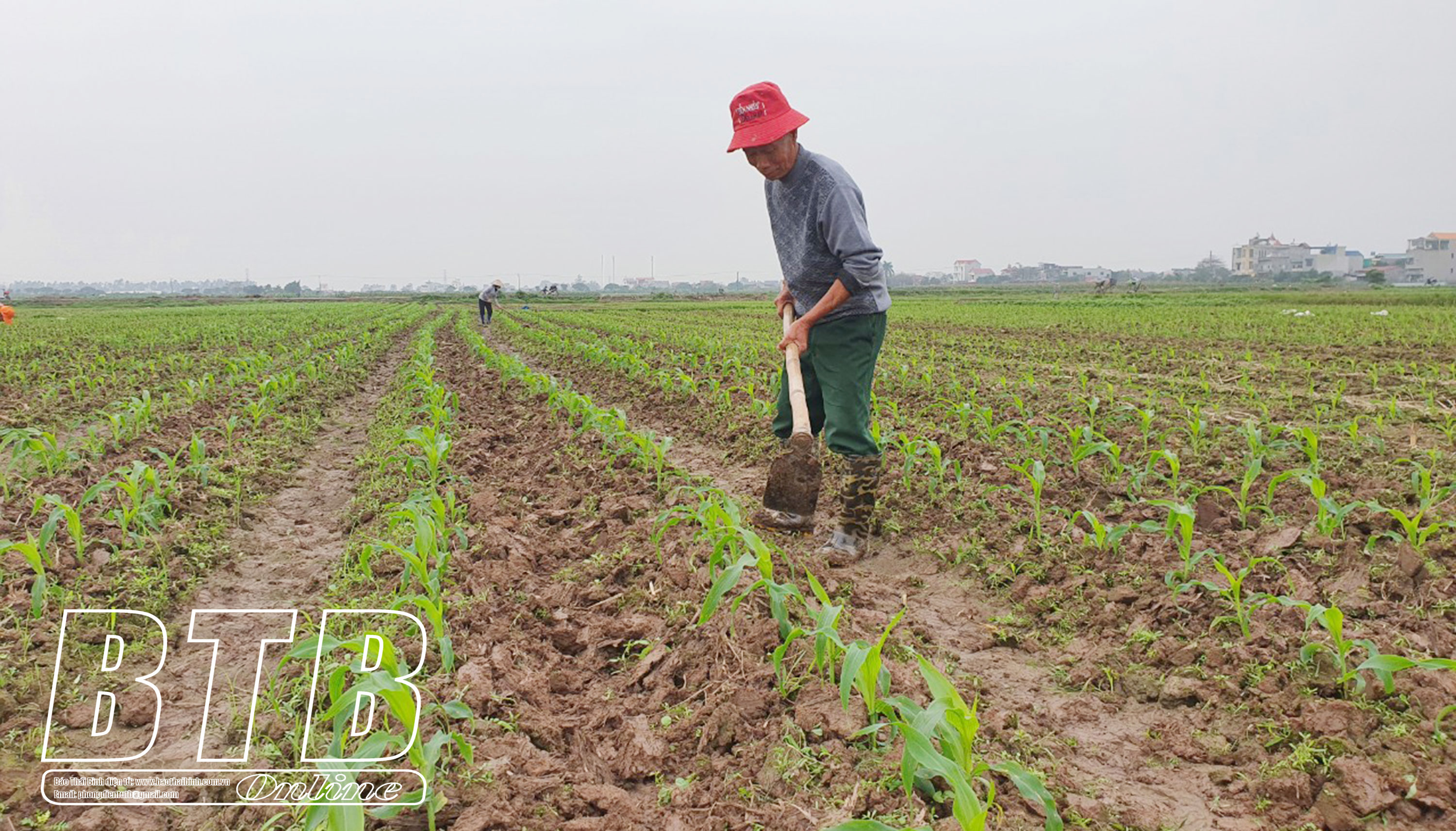 Nông dân xã Quang Trung (Hưng Hà) chăm sóc cây ngô.