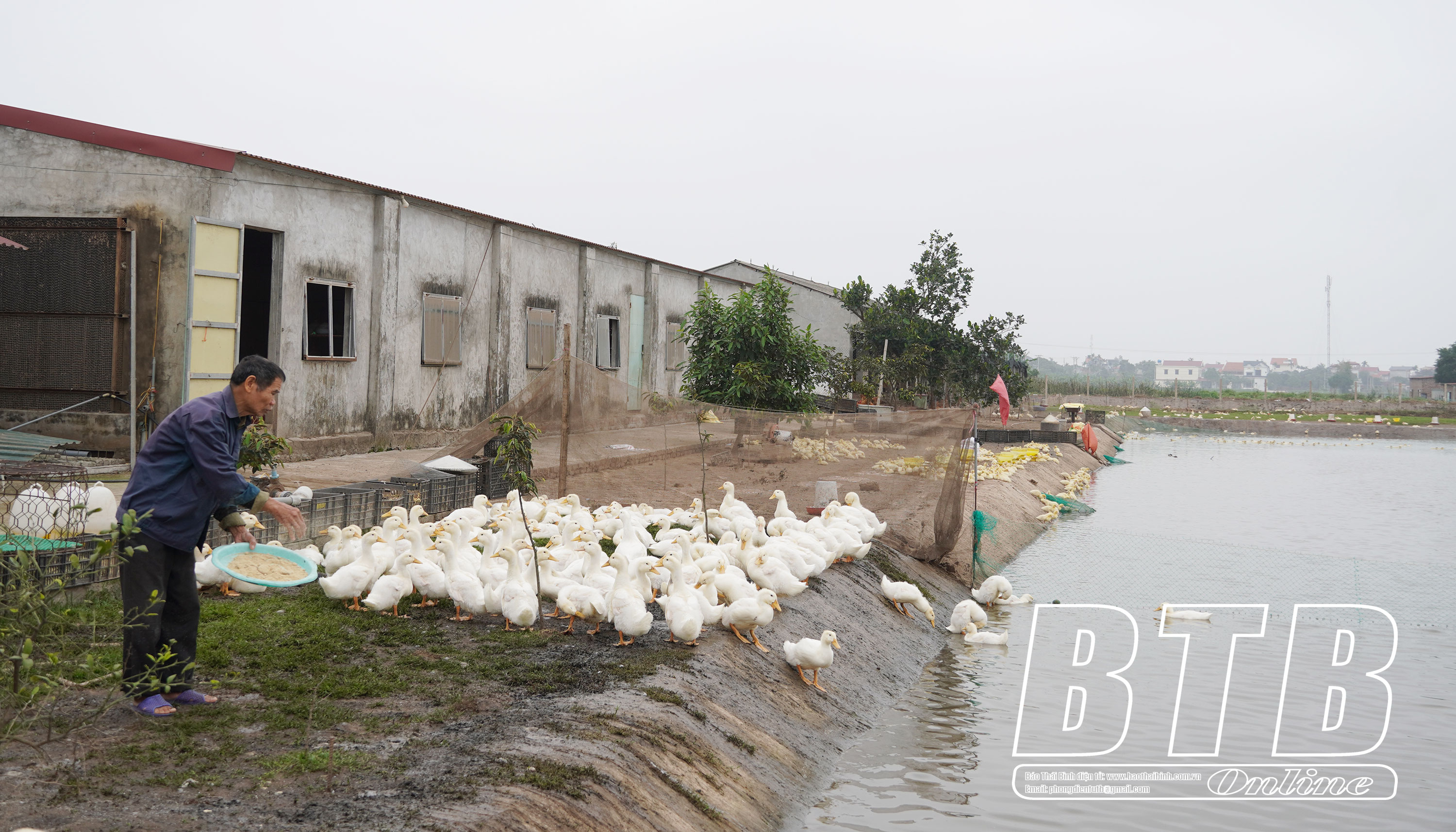 Cũng trên vùng đất cấy lúa kém hiệu quả của xã Dương Hồng Thủy, hơn 10 năm trước anh Nguyễn Đức Tính, thôn Kiên Thắng đã mạnh dạn nhận vùng đất úng trũng để phát triển mô hình kinh tế trang trại. Anh Tính tâm sự: Tôi đã cải tạo, quy hoạch gần 4.000m2 xây dựng chuồng trại nuôi gà, đào ao thả cá kết hợp chăn nuôi vịt, ngan. Trong đó, khu chuồng trại nuôi gà với diện tích 1.500m2. Diện tích còn lại, tôi đào 2 ao thả cá trắm, trôi, chép. Quanh bờ ao, tôi trồng xen các cây ăn quả, vừa giảm thiểu ô nhiễm môi trường vừa tăng thêm thu nhập. Mỗi năm trang trại xuất bán 2.500 - 3.000 con gà, hơn 3.500 con vịt, ngan và 3 - 4 tấn cá. Ngoài mô hình kinh tế trang trại, tôi còn nhận 5 mẫu ruộng của bà con trong xã cấy các giống lúa có giá trị kinh tế và năng suất cao như TBR225, VN20. Sản xuất nông nghiệp có yếu tố rủi ro cao vì phụ thuộc nhiều vào điều kiện thời tiết, tình hình dịch bệnh, giá cả thị trường, vật tư... Muốn thành công không thể áp dụng theo những phương pháp, kinh nghiệm truyền thống mà đòi hỏi phải không ngừng học tập, cập nhật kiến thức khoa học để áp dụng vào quá trình sản xuất, chăn nuôi. Vì vậy, tôi luôn quan tâm, tìm hiểu kiến thức, kinh nghiệm, các phương pháp khoa học kỹ thuật mới trong trồng trọt, chăn nuôi. Trung bình mỗi năm, mô hình kinh tế trang trại của tôi trừ chi phí thu lãi hơn 300 triệu đồng.