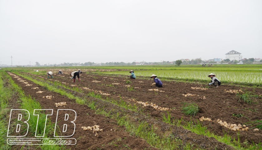 Hiệu quả trồng khoai tây từ chuyển đổi diện tích cấy lúa kém hiệu quả của anh Bùi Văn Thiện, xã Dương Hồng Thủy.
