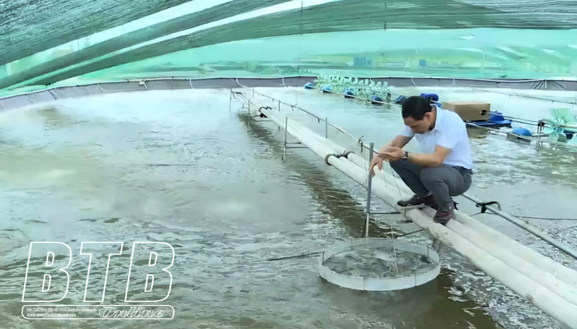 Mô hình nuôi tôm công nghệ cao của xã viên HTX Thanh niên nuôi trồng thủy sản và dịch vụ thương mại Tiến Đạt (Thái Thụy).