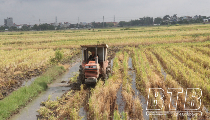 Tại xã Vũ Đông, ngay từ sáng sớm, nông dân đã xuống đồng làm đất, gieo mạ. Ông Nguyễn Văn Sơn, chủ máy làm đất thôn Đình Phùng cho biết: Do thời tiết, năm nay lúa xuân thu hoạch muộn hơn so với mọi năm. Đặc biệt, thời điểm lúa chín có mưa liên tiếp nên tiến độ gặt cũng chậm lại. Do thời gian chuyển giữa 2 vụ rất ngắn, không kịp nghỉ, ngay sau khi thu hoạch xong lúa xuân tôi bắt tay luôn vào cày lồng dập rạ để chuẩn bị cho sản xuất vụ mùa. Nước về đến đâu tôi cày đến đó để bảo đảm rơm rạ được hoai mục, tránh tình trạng ngộ độc hữu cơ cho lúa mùa.