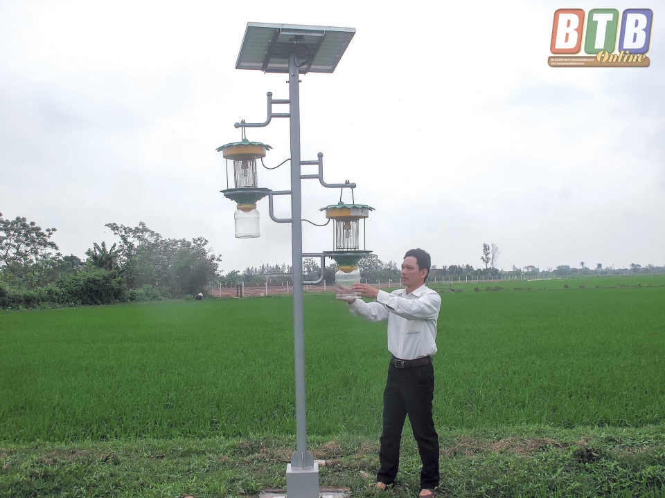 Giới thiệu thêm về mô hình, ông Vũ Văn Xuyền cho biết: Để hạn chế sâu bệnh, mô hình quản lý dịch hại triển khai tại địa phương còn áp dụng phương pháp tưới nông - lộ - phơi, hiện tại khi lúa đang giai đoạn đẻ nhánh, HTX điều tiết, giữ nước xâm xấp mặt ruộng, khi lúa kết thúc đẻ nhánh tiến hành rút cạn nước để hạn chế lúa đẻ nhánh vô hiệu, rễ lúa ăn sâu chống đổ. Ngoài ra, mô hình còn được trang bị một đèn bẫy để điều tra sâu bệnh với nhật ký ghi chép từng ngày.
