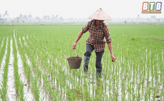 Nông dân thôn Lộng Khê 4, xã An Khê chăm sóc lúa tẻ Nhật.