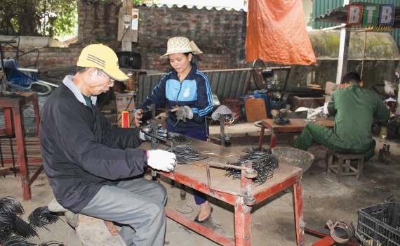 Nghề làm cạm chuột ở xã Mê Linh (Đông Hưng) tạo việc làm cho hàng trăm lao động nông nhàn của địa phương.