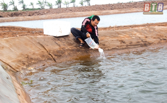 Theo anh Đỗ Văn Thiểm, thôn Thành Long, với diện tích 8.000mchia làm 6 ao, anh thả gần 5 triệu con tôm thẻ chân trắng giống. Mỗi khi vào vụ nuôi trồng thủy sản anh Thiểm đều đầu tư kinh phí cải tạo ao đầm, trước khi thả tôm giống anh Thiểm đã vệ sinh ao rất kỹ bằng cách sử dụng vôi bột rắc đáy ao. Hàng ngày theo dõi diễn biến môi trường nước bảo đảm yếu tố thích hợp cho con giống phát triển.