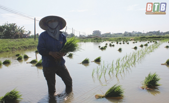 Nông dân Thái Thụy gieo cấy lúa mùa.
