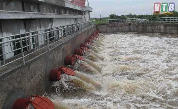 Trạm bơm Lịch Bài (Kiến Xương) vẫn được vận hành hết công suất.