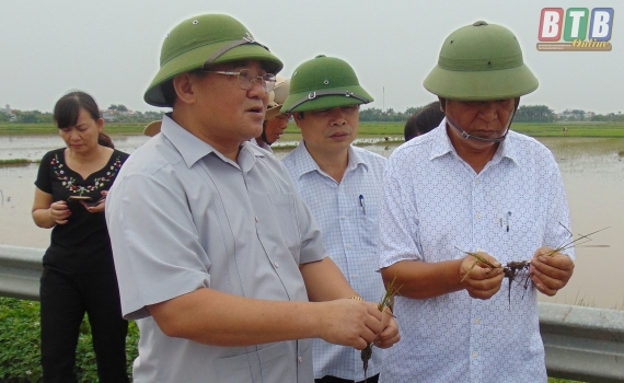 Qua kiểm tra thực tế tại các xã: Tây Lương, Đông Xuyên, Nam Thịnh và cống Khổng (Nam Hưng), đồng chí Phó Chủ tịch UBND tỉnh yêu cầu huyện Tiền Hải tổ chức thống kê, rà soát diện tích lúa bị ngập úng; phân công cán bộ trực tiếp xuống đôn đốc cơ sở; hệ thống nông giang và nông dân các địa phương có diện tích lúa bị ngập úng khẩn trương tiêu thoát nước kịp thời, tiêu cạn nước đệm các kênh mương trục chính và nội đồng, tổ chức kẻ nước bao quanh đồng; đẩy nhanh tiến độ gieo cấy trên diện tích còn lại và những diện tích bị úng lụt không thể khắc phục được bằng hình thức gieo sạ hoặc mạ dự phòng, lúa được tỉa từ các ruộng gieo, cấy dày không bị ảnh hưởng của đợt mưa kéo dài.