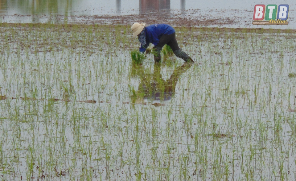 Đối với diện tích lúa không bị ảnh hưởng hoặc ít bị ảnh hưởng của mưa úng, đồng chí Phó Chủ tịch UBND tỉnh yêu cầu huyện Tiền Hải chỉ đạo các địa phương giữ mực nước nông để lúa đẻ nhánh thuận lợi, diện tích chưa được bón phân thúc cần khẩn trương bón thúc ngay theo quy trình của từng giống sau khi nước rút và khi cây lúa đẻ nhánh với quan điểm bón cân đối NPK, tăng cường Kali để hạn chế bệnh bạc lá phát sinh và gây hại; đồng thời thường xuyên kiểm tra đồng ruộng, phát hiện và phòng trừ kịp thời các đối tượng sâu bệnh gây hại, bảo vệ an toàn diện tích lúa mùa đã cấy.