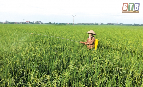 Nông dân Vũ Thư tập trung phun thuốc phòng, trừ các đối tượng sâu bệnh cuối vụ.