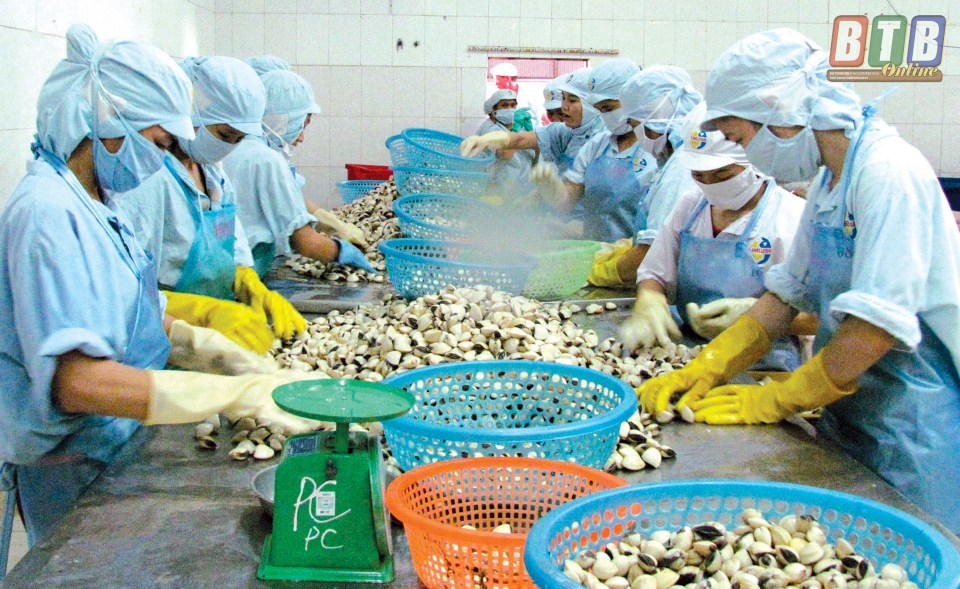 Chế biến ngao xuất khẩu tại Công ty TNHH Nghêu Thái Bình cụm công nghiệp Cửa Lân (Tiền Hải).