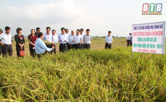 Các đại biểu đã tham quan thực tế cánh đồng khu Đông Trung, thị trấn Thanh Nê (Kiến Xương) sử dụng các sản phẩm phân bón hữu cơ TĐ 16 và TĐ17 bón cho lúa J02 trong vụ mùa. Thông qua thông tin, trình chiếu các mô hình trình diễn khảo nghiệm và trao đổi tại hội thảo, các đại biểu đã được các kỹ sư nông nghiệp giới thiệu, hướng dẫn sử dụng phân bón hữu cơ TĐ 16 và TĐ17 đúng cách, đạt hiệu quả kinh tế cao nhất.