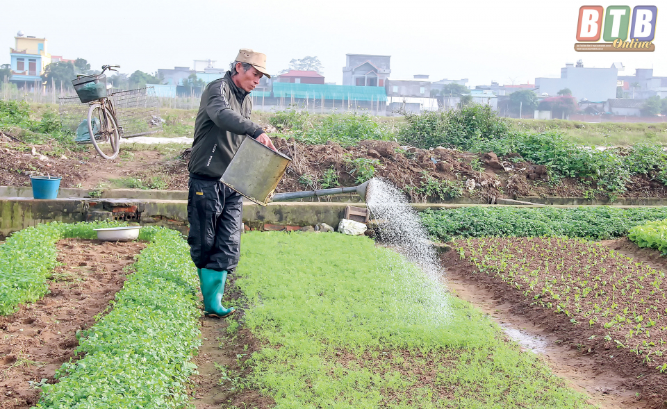 Tỉ mẩn chăm sóc luống rau cải thìa đang độ phát triển, ông Trịnh Sơn Hải, xã Vũ Phúc (thành phố Thái Bình) bộc bạch: Bằng giờ năm ngoái, giá rau bèo bọt, nông dân chẳng muốn thu hoạch. Năm nay, nhìn chung người trồng rau có thu nhập tốt bởi giá rau duy trì mức cao, rau sản xuất đến đâu được thu hoạch ngay đến đó. Chân đất phù hợp cùng với việc chăm sóc tốt, rau phát triển đều, chất lượng ổn định, trung bình, giá rau cải bán cho nhà hàng đạt 2.500 - 3.000 đồng/mớ, xà lách, rau diếp đạt 12.000 đồng/kg. Gia đình tôi có 2 sào rau, thu hoạch vụ vừa rồi đạt 20 triệu đồng. Cải, xà lách, rau diếp đều là những loại rau được tiêu thụ mạnh, đặc biệt dịp tết, hơn nữa những loại rau này dễ chăm sóc, có thời gian sinh trưởng ngắn. Căn cứ vào thời tiết, thời gian sinh trưởng, tôi xuống giống trước tết 25 - 30 ngày. Vậy nên dù thời tiết mưa rét, chúng tôi vẫn tích cực trồng, chăm sóc để kịp thu hoạch bán tết. Với định hướng sản xuất sạch, an toàn, hàng năm, nông dân chúng tôi thường xuyên được tham gia các lớp tập huấn, tham quan các mô hình sản xuất sạch, công nghệ cao nhưng do đầu tư lớn, tiêu chuẩn ngặt nghèo nên khó áp dụng vào sản xuất nhỏ lẻ. Hiện tại, chúng tôi sử dụng thuốc bảo vệ thực vật sinh học, bảo đảm thời gian cách ly trong sử dụng phân bón để cung cấp ra thị trường các loại rau an toàn.