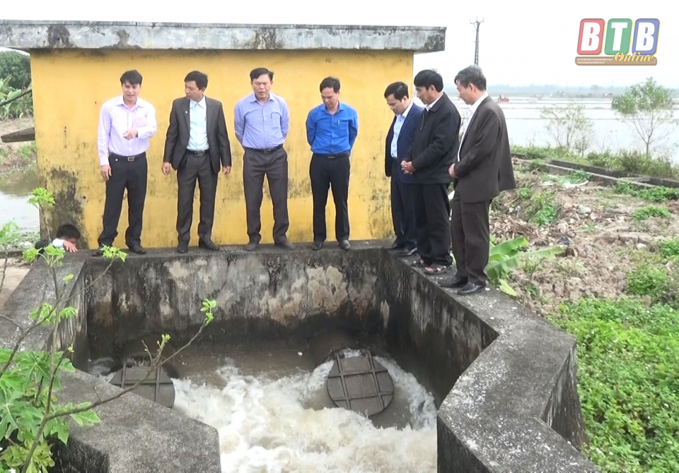 Kiểm tra việc lấy nước phục vụ công tác làm đất tại xã Bình Định.
