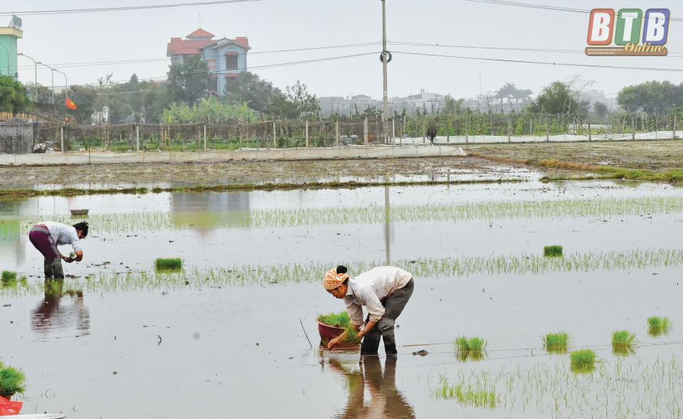 Nông dân xã Vũ Phúc (thành phố Thái Bình) gieo cấy lúa xuân.