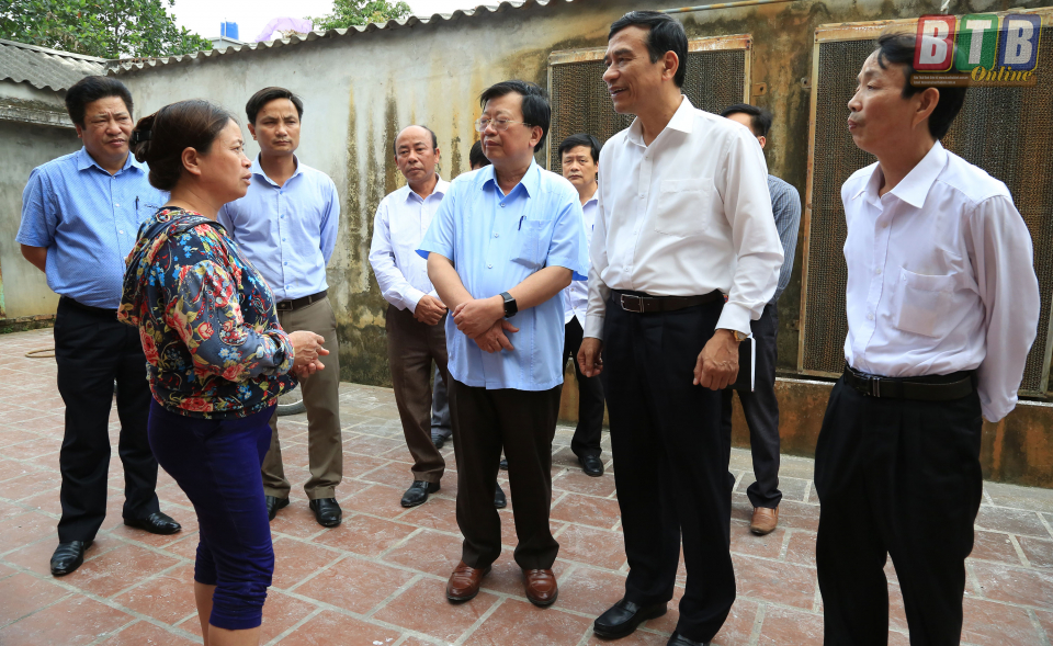 Trực tiếp xuống kiểm tra hộ chăn nuôi của huyện Đông Hưng có lợn ốm bất thường, đồng chí Phó Bí thư Tỉnh ủy, Chủ tịch UBND tỉnh yêu cầu chủ hộ không cho người ra vào khu vực chuồng nuôi, nếu lợn chết phải thực hiện tiêu hủy đồng thời thực hiện nghiêm túc vệ sinh tiêu độc khử trùng theo đúng quy định của cơ quan chuyên môn.