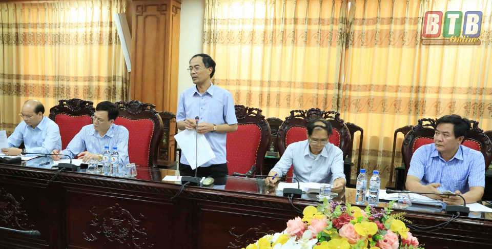 Lãnh đạo huyện Hưng Hà báo cáo tại cuộc họp. Ảnh: Thành Tâm