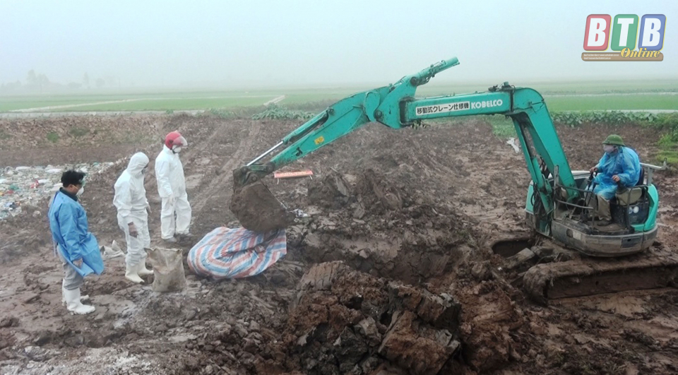 Quy trình chôn lấp, tiêu hủy lợn không rõ nguồn gốc tại xã Đông Đô, huyện Hưng Hà.