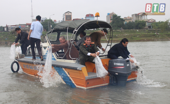 Nhân dịp này, các đồng chí lãnh đạo tỉnh, sở, ban, ngành, đoàn thể, huyện, thành phố tham gia thả giống thủy sản trên sông Trà Lý (thành phố Thái Bình) góp phần khôi phục, tái tạo và phát triển nguồn lợi thủy sản.